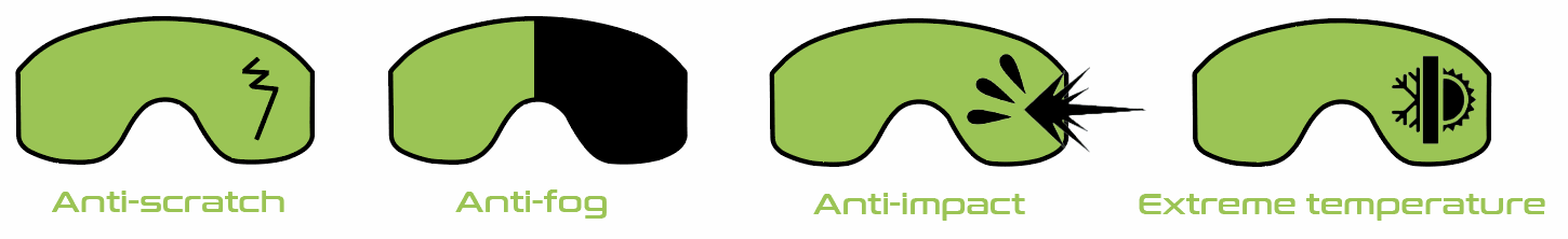 Zabezpieczenie przed zamgleniem - Zabezpieczenie przed zarysowaniami - Odporność na uderzenia